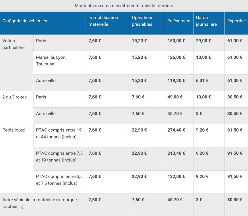 Voici tous les frais de mise en fourrière selon les villes AVANT cet arrêté: