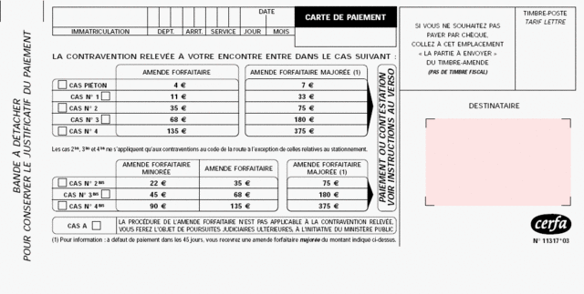 - Joindre la carte de paiement jointe à l’avis de contravention sans l’agrafer ni la coller