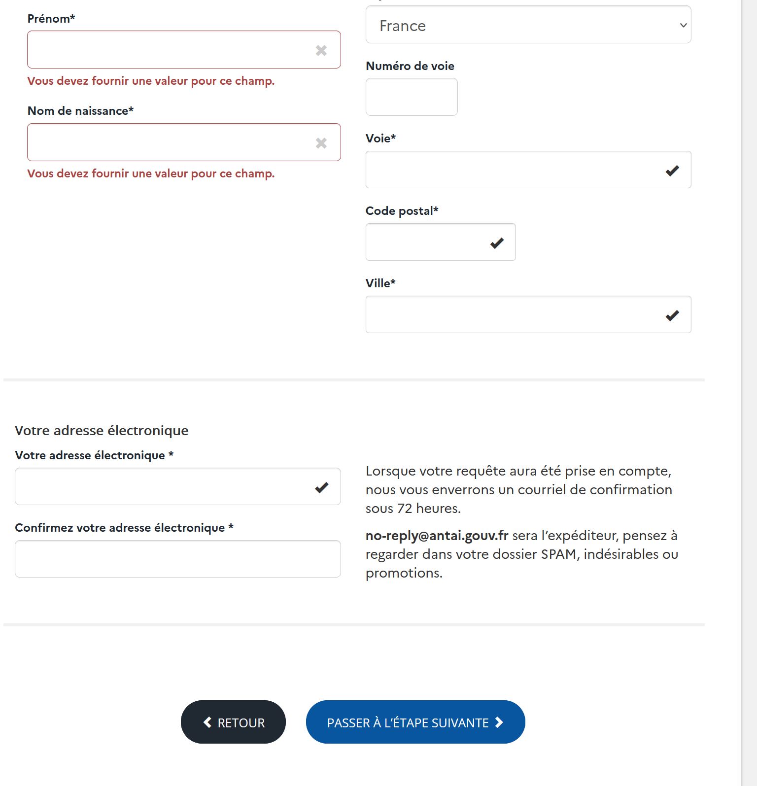 Comme l’indique le site, le mail pour la suite viendra, dans les 72 heures, de no-reply@antai.gouv.fr sera l’expéditeur, donc attention aux faux mails et vérifiez vos spams !