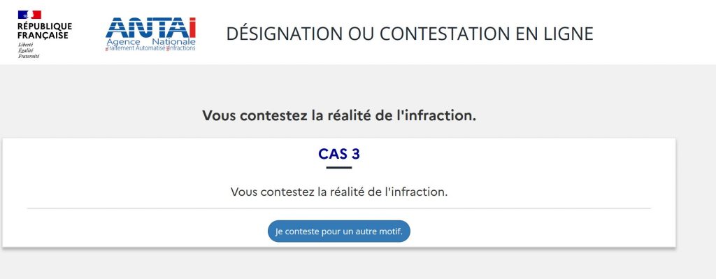 Le cas le plus courant est ensuite proposé –> Vous contestez la réalité de l’infraction.