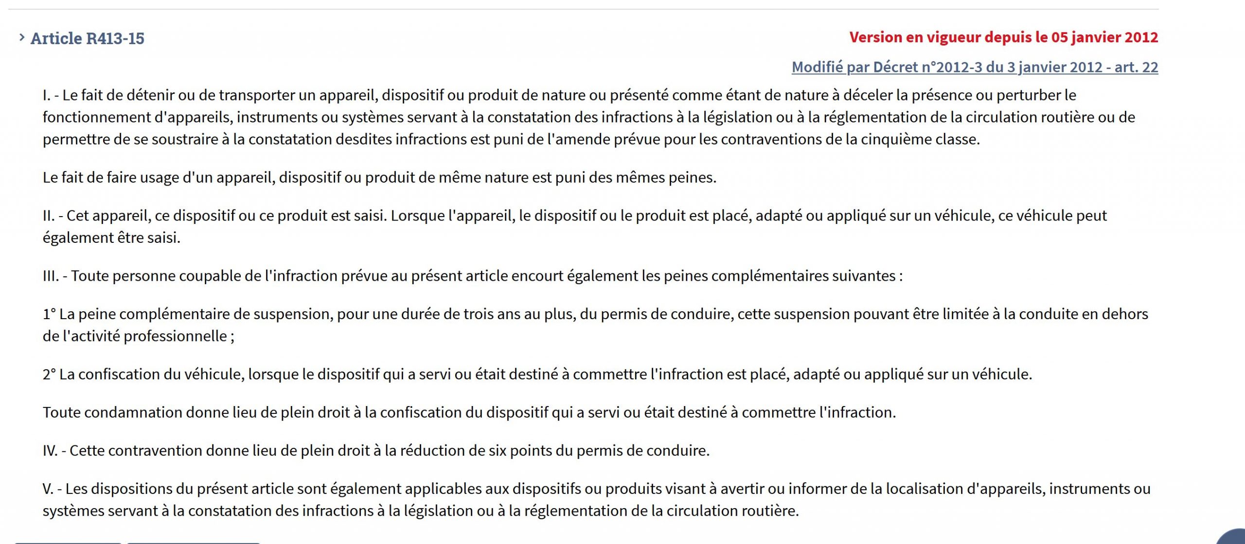 Si l’instrument qui sert à détecter les radars est en pièces détachées, alors la loi ne s’applique pas..