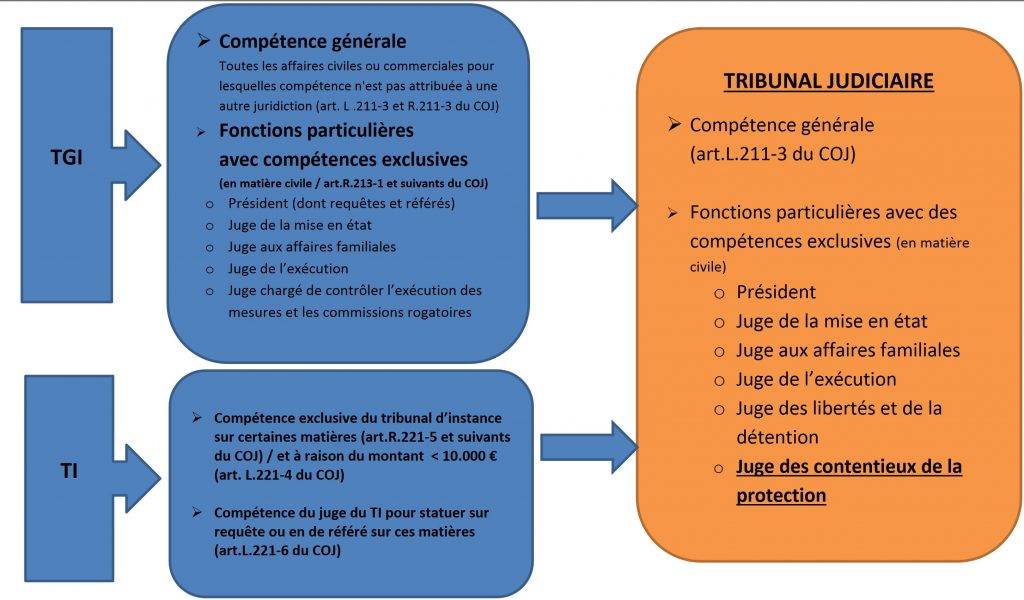 Depuis le 1er janvier 2020, les 285 Tribunaux d’Instance et 164 Tribunaux de Grande Instance ont disparu, remplacés par les Tribunaux Judiciaires.